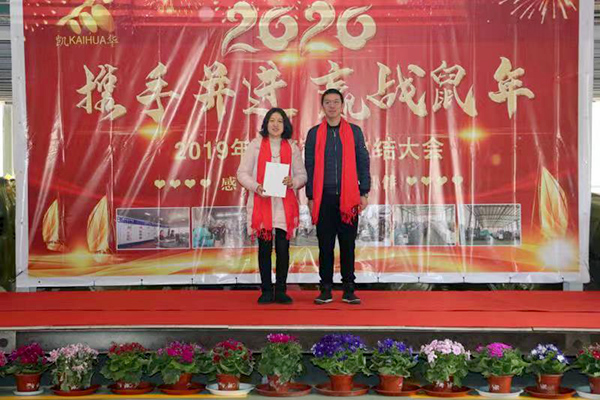 凯华2019年度总结暨表彰大会今日胜利召开,公司总经理冯庆凯总结回顾了过去一年的工作,表彰在生产、销售和其他各项工作中做出突出成绩的先进集体和先进个人。向一年来辛勤奋战生产和销售第一线为“凯华”发展作出巨大贡献的可敬的员工同志们,向为公司的发展默默奉献的各位员工家属们致以诚挚的问候和新年的祝福!向受到表彰的集体和个人表示衷心的祝贺。 2019年,凯华所有员工的努力获得了肯定,颁发了优秀员工奖15名,精英贡献奖4名,销售业绩奖2名,优秀部门奖2个,收获满满!感谢所有的凯华人!感谢所有支持帮助凯华的朋友们,2020年让东升国际 不忘初心,逐梦前行!